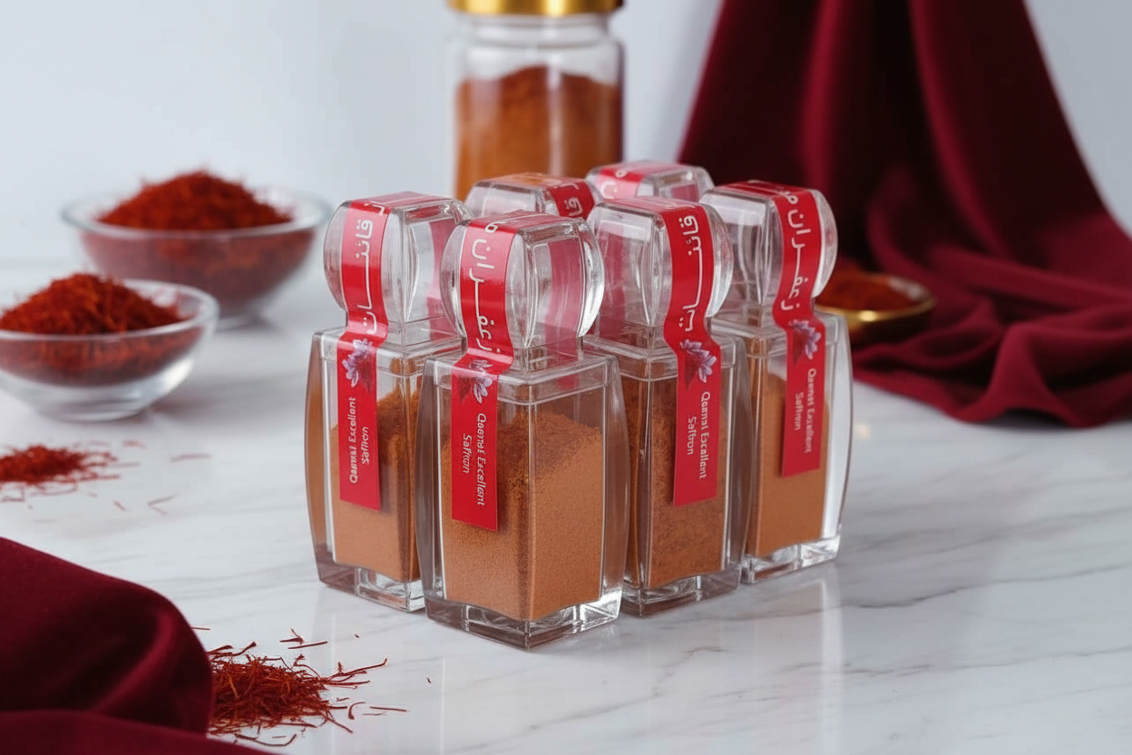 پودر زعفران شاهانه ترکیب 30درصد زعفران درجه یک سرگل و 70درصد ریشه سفید خالص زعفران