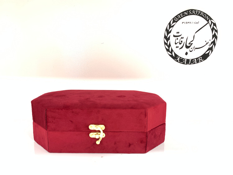 جعبه بسته بندی مخمل شامل یک ظرف خاتم با یک مثقال زعفران درجه یک قائنات یک عدد هاونگ برنجی کاربردی مخصوص و 10 گرم هل اکبر می باشد.